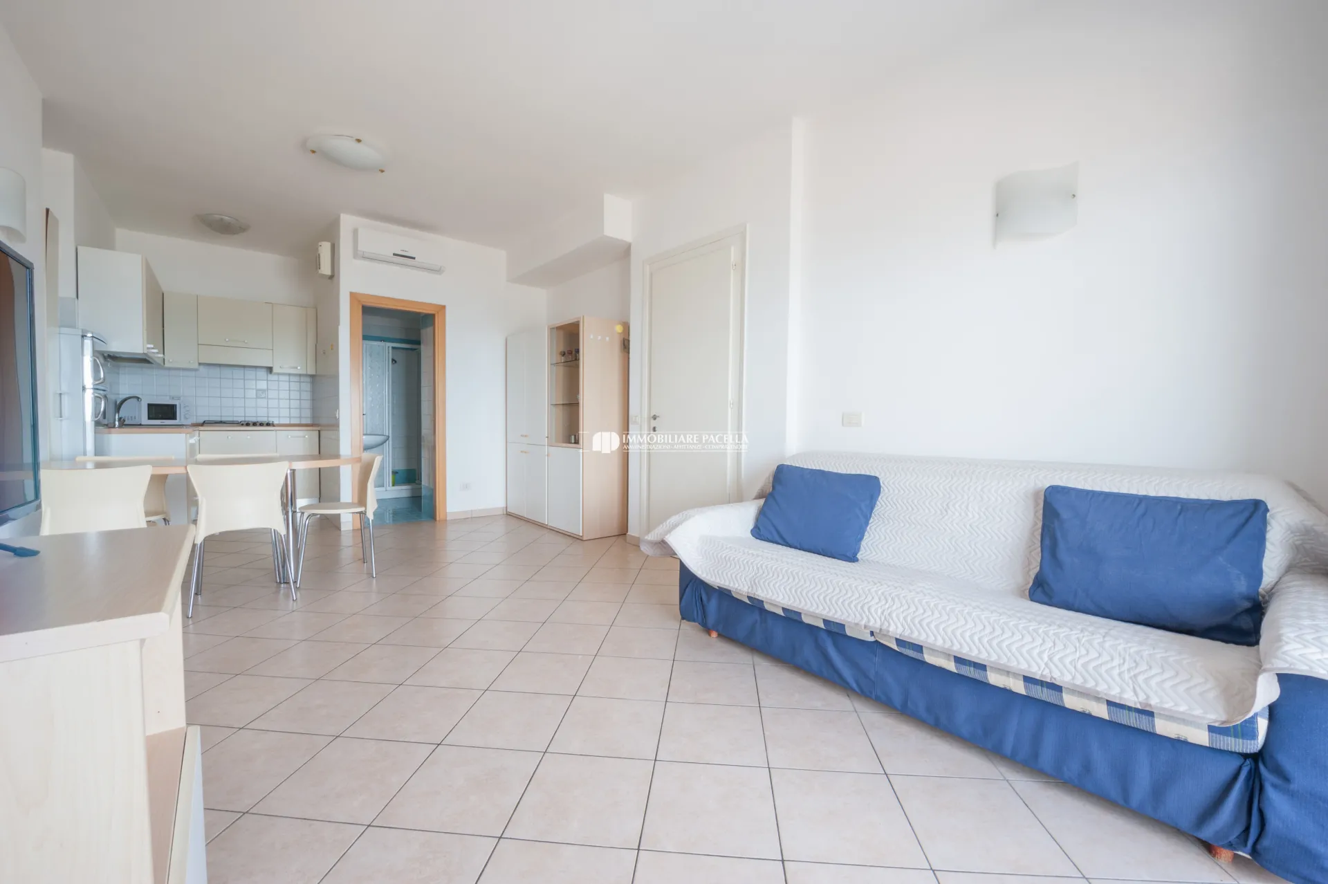 Internally renovated in the furnishings and equipped with every comfort for a stay beyond expectations, this solution presents an organization of spaces in a comfortable living area from which it is possible to see the sea, equipped with a kitchenette, dining and relaxation area, and in a sleeping area that includes two bedrooms, both bright, one double and one with a castle. The bathroom has been renovated and offers a comfortable shower with box. The apartment is also air conditioned and equipped with a washing machine. Associated with the unit is a beach place and, in the condominium courtyard, a reserved parking space.